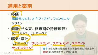 「7-2 適用と使用する薬剤(1分33秒)では、持続皮下注入法を用いた疼痛・鎮静・制吐などの実際について講義します。
