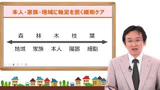 最後に「1-2-5 本人・家族・地域に軸足を置く緩和ケア」(2分30秒)では、ここまでの講義をもとに患者をまるごと、家族ぐるみに、地域に視座を置いて患者を診ていくことについて総括します。